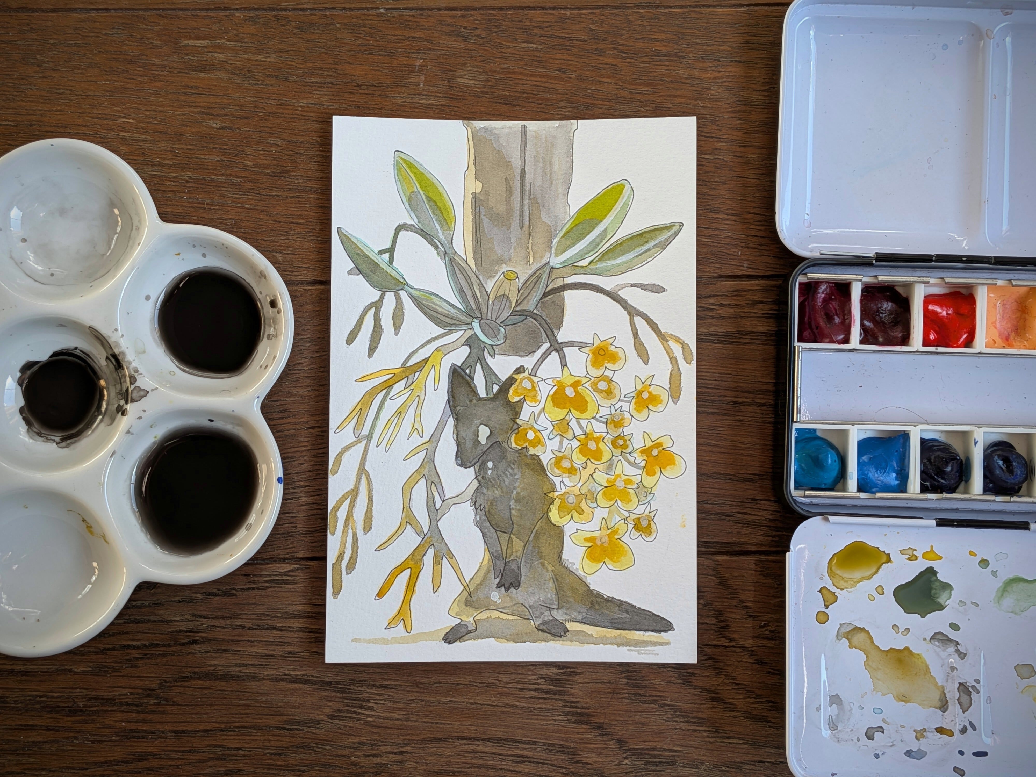 固形墨と透明水彩で仕上げております。