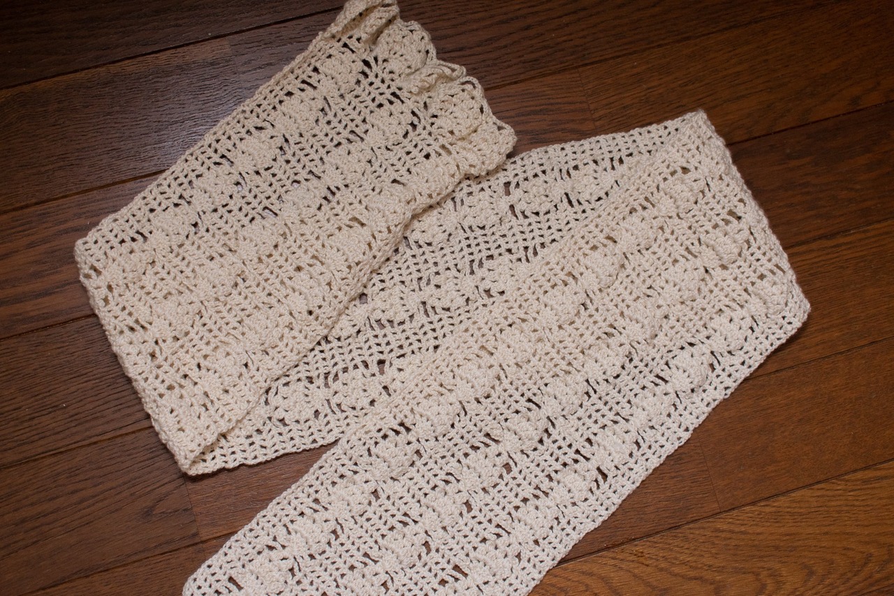全長160cmほど、現在私が持っている同柄の作品とは別途で編み上げた作品です。